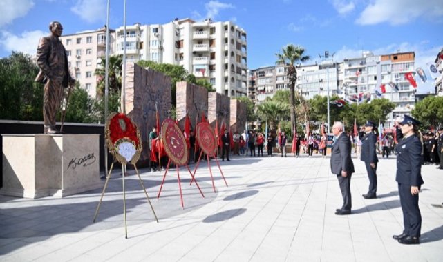 İzmir'in Karabağlar ilçesindeki yeni meydanında Cumhuriyetimizin 100'üncü yılı dolayısıyla çelenkler sunuldu.İZMİR (İGFA) - İzmir Karabağlar,'da Cumhuriyetimizin kuruluşunun 100.yılı resmi kutlamaları, "100. Yıl Uğur Mumcu Parkı" Atatürk Büstü ve rölyeflerinin önünde düzenlenen çelenk sunma töreniyle başladı. Törene Karabağlar Kaymakamı Cemil Özgür Öneği, Garnizon Komutanı Personel Albay Levent Karamalak, Karabağlar Belediye Başkanı Muhittin Selviyopu, siyasi parti temsilcileri, kamu kurum ve kuruluş temsilcileri, belediye meclis üyeleri, sivil yoplum kuruluş temsilcileri, muhtarlar, okul müdürleri, öğrenciler ve çok sayıda vatandaş katıldı.Tören, Kaymakamlık, Garnizon Komutanlığı ve Belediye Başkanlığı çelenklerinin sunumunun ardından saygı duruşu ve okunan İstiklal Marşı'yla sona erdi.
