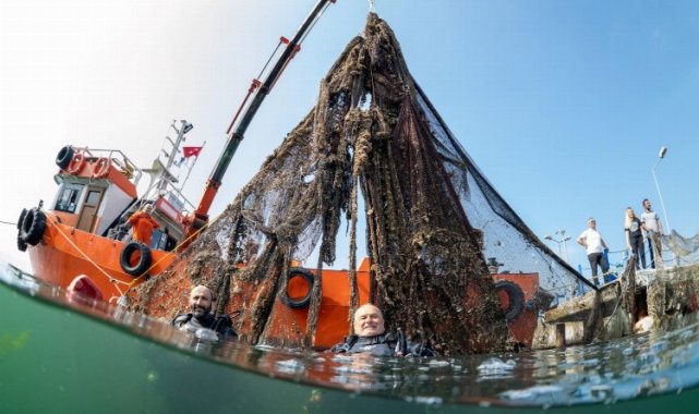 İzmit Körfezinden 5 ton hayalet ağ çıkarıldı