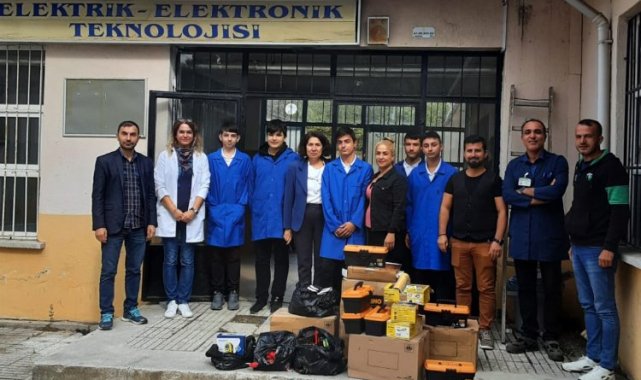 İzmit Belediyesi İklim Değişikliği ve Sıfır Atık Müdürlüğünce okullarda yürütülen geri dönüşüm çalışmaları kapsamında son olarak geri dönüşüme katkı sağlayan Atatürk Mesleki ve Teknik Anadolu Lisesi'ne hediyeleri takdim edildiKOCAELİ (İGFA) - İzmit Belediyesi İklim Değişikliği ve Sıfır Atık Müdürlüğü çalışmalarıyla okullarda öğrenciler geri dönüşüme teşvik ediliyor.Geri dönüşüme en çok katkı sağlayan okullarda öğrenciler için hediyeler takdim ediliyor. Bu kapsamda son olarak Atatürk Mesleki ve Teknik Anadolu Lisesi, topladığı atıklar karşılığında 30 kişilik atölye malzemesinin sahibi oldu.Her birinden 30 adet olmak üzere pense, kontrol kalemi, tornavida, alet çantası, eldiven ve gözlük gibi malzemeler okula teslim edildi. Hediye teslimini İzmit Belediyesi İklim Değişikliği ve Sıfır Atık Müdür Vekili Havva Açıkgöz yaptı. Müdür Yardımcısı Selda Karakoç, Elektrik Elektronik Öğretmenleri Neslihan Yıldırım, Alper Döner, Cebrail Arın ve öğrenciler İzmit Belediyesine desteklerinden dolayı teşekkür etti.
