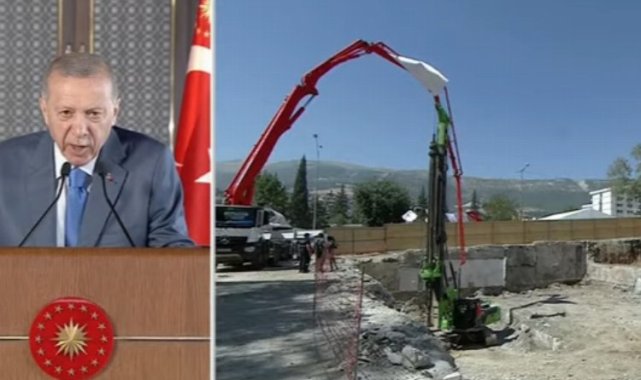 Başbakanlığı ve Cumhurbaşkanlığı dönemlerinde TOKİ aracılığıyla Türkiye'nin yapı stokunun yenilenmesi için yoğun çaba harcadıklarını belirten Cumhurbaşkanı Erdoğan, TOKİ'nin bugüne kadar ülke genelinde 1 milyon 200 bin proje ürettiğini, konut projeleriyle birlikte okullar, hastaneler, kamu kurumları ve daha nice binayı TOKİ eliyle yeniden inşa ettiklerini söyledi.Şimdiye kadar TOKİ binalarıyla ilgili hiçbir sıkıntı yaşanmadığını, TOKİ'nin 6 Şubat depremlerinden de alnının akıyla çıktığını ifade eden Cumhurbaşkanı Erdoğan, depremin özellikle kentsel dönüşüm hamlelerinin ne kadar isabetli olduğunu bir kez daha ortaya koyduğunu dile getirdi."KENTSEL DÖNÜŞÜM PROJELERİYLE 3,3 MİLYON KONUTUN İNŞASINI SAĞLADIK"Son 21 yılda kentsel dönüşüm ve depreme hazırlık anlamında ne yaptılarsa bu "takoz" zihniyete rağmen yaptıklarını belirten Cumhurbaşkanı Erdoğan, "Kentsel dönüşüm projeleriyle ülkenin dört bir yanında 3,3 milyon konutun inşasını sağladık. Böylece 20 milyona yakın insanımızı güvenli yuvalara kavuşturduk. Türkiye genelinde 6,5 milyon konutu süratle dönüştürmeyi hedefliyoruz. İnşallah bunları tamamladığımızda şehirlerimiz hem güzelleşecek hem de depremlere çok daha hazırlıklı hale gelecektir." diye konuştu.BAKAN ÖZHASEKİ'DEN SPOR KULÜPLERİNE ÇAĞRICanlı bağlantıda konuşan Çevre, Şehircilik ve İklim Değişikliği Bakanı Mehmet Özhaseki ise Cumhurbaşkanı Erdoğan'ın da söylediği gibi bugün merkezde inşaatları başlattıklarını belirterek bundan son derece mutluluk duyduklarını söyledi.Diğer yandan yerinde dönüşüm için ilk temelleri attıklarını kaydeden Özhaseki, tüm Türkiye'de olduğu gibi Kahramanmaraşlıların da yerinde dönüşüm projesine itibar ettiklerini, kendilerinin de işin sonuna kadar takipçisi olacaklarını bildirdi.Özhaseki, Galatasaray Spor Kulübü Başkanı Dursun Özbek, Türkiye Odalar ve Borsalar Birliği ve Fesih Avcı Bey'in 913 konut taahhütlerini de bugün Kahramanmaraş'ta gerçekleştirdiklerini bildirerek diğer spor kulüplerine "yardım yapın" çağrısında bulundu.Konuşmaların ardından Cumhurbaşkanı Erdoğan, Kahramanmaraş'ta bulunan Çevre, Şehircilik ve İklim Değişikliği Bakanı Mehmet Özhaseki ve beraberindekilerden temel atma çalışmalarını başlatmak üzere butona basmalarını istedi.