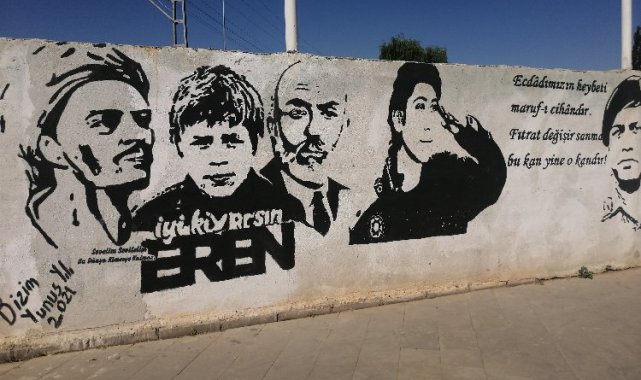 KAYMEK, gönülden gönüle uzanmaya devam ediyor. Vatandaşlara yönelik mesleki beceri ve kişisel eğitim kursları veren KAYMEK, sosyal ve kültürel programlar düzenleyerek, gençlerin ve çocukların eğitim hayatlarında daha başarılı olmaları için destekleyici kurslar da veriyor. Bu kapsamda Sarıoğlan ilçesinde Kayseri Büyükşehir Belediyesi bünyesinde faaliyet gösteren KAYMEK Palas Sosyal Yaşam Merkezi tarafından örnek bir çalışmaya imza atıldı. Palas Sosyal Yaşam Merkezi'nin kursiyer ve personeli, cennetten bir köşe olan duvara bir cennetlik isim daha ekledi. Şehit Komiser Yardımcısı Cennet Yiğit, şehit Ömer Halisdemir, milli şairimiz Mehmet Akif Ersoy ve Yunus Emre gibi önemli ve değerli isimlerin yer aldığı duvara, Trabzon Maçka'da 11 Ağustos 2017'de teröristlerle girilen çatışma sırasında hayatını kaybederek şehit olan 15 yaşındaki Eren Bülbül'ün de resmi çizildi.Muhteşem bir çalışmaya imza atan kursiyer ve personel, çalışma sonunda hep bir ağızdan gür bir ses ile "İyi ki Varsın Eren" diye bağırdı.