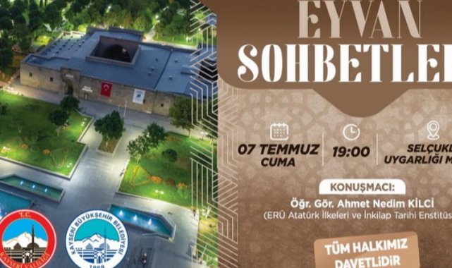 Kayseri Büyükşehir Belediyesi, yaz akşamlarında Selçuklu Uygarlığı Müzesi'nde kentin tarihi, doğal, kültürel değerlerinin anlatılacağı Eyvan Sohbetleri'ne bu yaz da devam ediyor.Büyükşehir Belediyesi, Başkan Dr. Memduh Büyükkılıç'ın özel önem verdiği kültür, sanat faaliyetlerine devam ediyor. Bu kapsamda Selçuklu mimarisi şaheserlerinden, Kayseri Büyükşehir Belediyesi'ne bağlı olarak hizmet veren Selçuklu Uygarlığı Müzesi, "Eyvan Sohbetleri"ne ev sahipliği yapacak.Kentte kültür ve sanat rüzgârı estirmeye devam eden Büyükşehir, Kayseri Valiliği iş birliği ile Eyvan Sohbetleri etkinliği düzenleyecek.Bu kapsamda yarın Selçuklu Uygarlığı Müzesi'nde saat 19.00'da ERÜ Atatürk İlke ve İnkılapları Tarihi Enstitüsü Öğretim Görevlisi Ahmet Nedim Kilci, Çanakkale Ruhu konulu konferansta Kayserililerle buluşacak.Büyükşehir, açık hava müzesi konumunda olan Kayseri'yi kültür sanatın merkezi yapmaya devam ediyor.