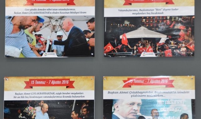 Kayseri'nin Kocasinan Belediyesi Çözüm Merkezi'nde 15 Temmuz hain darbe girişiminin fotoğraflarla anlatıldığı köşe, belediye hizmet binasına gelen vatandaşlar tarafından büyük ilgiyle karşılanıyor.Mehmet UZEL (KAYSERİ İGFA)