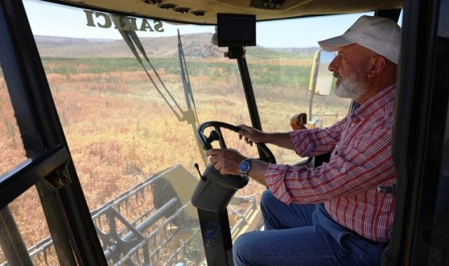 Kayseri Kocasinan Belediye Başkanı Ahmet Çolakbayrakdar, 100 dönüm alanda ekimini yaptığı aspirin hasadını da kendisi yaptı.Mehmet UZEL (KAYSERİ İGFA)