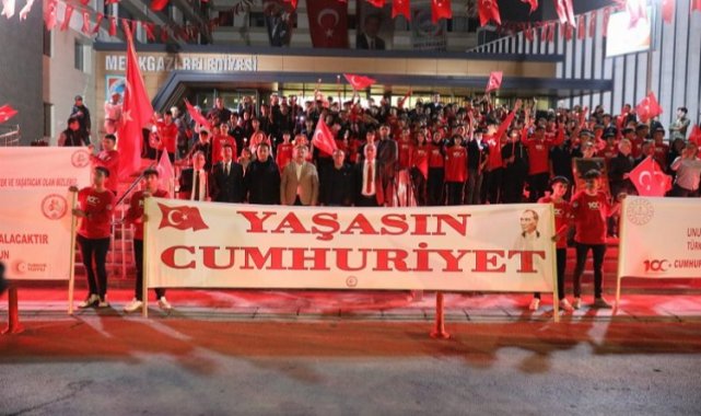 Sizler kendinizi ne kadar iyi yetiştirir, iyi görevlerde bulunursanız bizler o kadar seviniriz. Ülkemiz de en iyi noktalara gelir. Bizler de belediye olarak elimizden geldiğince gençlerimize sahip çıkarak, projeler üretiyoruz. Türkiye'de en fazla okul yapan belediyeyiz. 4,5 senede tam 20 okul yaptık. Aynı zamanda Akıl küpü isminde kütüphaneler yapıyoruz. Şu anda kütüphanelerimize kayıtlı yaklaşık 30 bin üye bulunuyor. Önümüzdeki günlerde Kazım Karabekir Mahallesinde bir Akıl Küpü Kütüphanesini de hayata geçiriyoruz. Sonrasında Esentepe ve Mimsin'de de kütüphaneler açıyoruz. Gençlerimizin şehir merkezine gelmeden kendi mahallerinde ders çalışmalarına imkan tanıyoruz. Buralar öğrencilerimiz için güvenli tesisler. Bu tür etkinlikler birlik ve beraberliğimizi pekiştiren etkinlikler. Fener alayı yürüyüşümüze katılımlarından dolayı herkese teşekkür ederiz. Tüm şehitlerimizi rahmetle anıyor, gazilerimizi şükran ve minnetle yad ediyorum. Cumhuriyetimizin 100. yıl dönümü ve Cumhuriyet Bayramımız kutlu olsun. Başta Mustafa Kemal Atatürk olmak üzere, vatanımızın bütünlüğü için canını feda eden şehitlerimizi rahmetle, gazilerimizi minnet ve şükranla anıyorum." dedi.