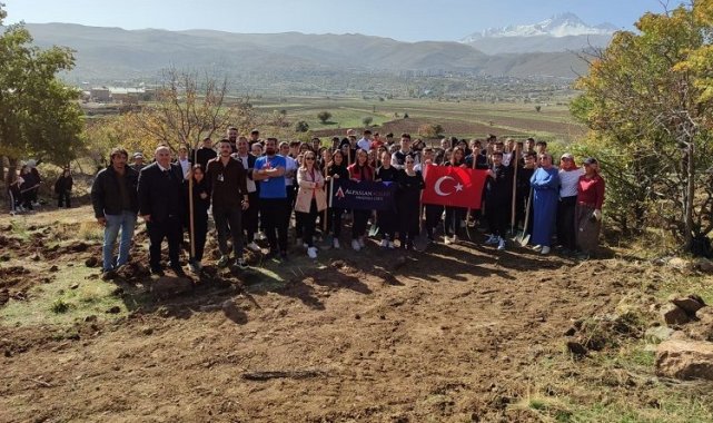 Ali Dağı 360 Derece Yürüyüş Alanındaki etkinlikte Alpaslan Koleji öğrenci, öğretmen ve idarecileri 500 meyve fidanı ve çam fidanını toprakla buluşturdu.