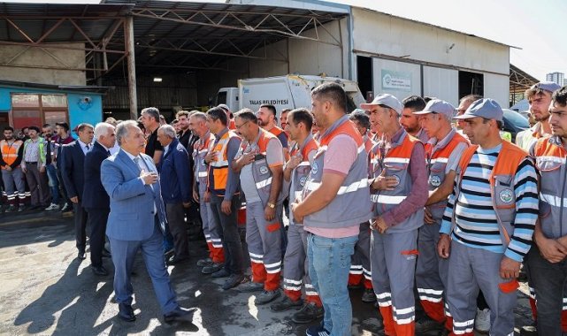 İlk olarak, Kayseri'nin Talas Belediyesi Meclis üyeleri AK Parti Grup Başkan Vekili Ragıp Dost ve MHP Grup Başkan Vekili İbrahim Ata ile birlikte teknik birimler şantiyesine giden Başkan Yalçın burada bulunan personel ve müdürlerle bayramlaştı.