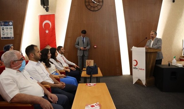 Kayseri'nin Talas Belediyesi Meclis Salonu'nda düzenlenen programda, Kızılay Hastanesi'nden Uzman Diyetisyen Sezgül Şahin tarafından bağışıklık sistemini güçlendirme yöntemleri başta olmak üzere doğru beslenme ve sağlıklı yaşam konuları anlatıldı.