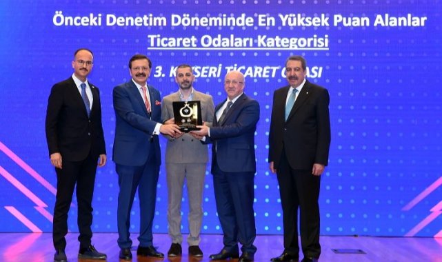 TOBB Akreditasyon Sistemi Denetimini başarıyla geçen Kayseri Ticaret Odası, Tüm Ticaret Odaları arasında aldığı puanla 3'ncü oldu. KTO'nun ödülünü Yönetim Kurulu Üyesi Mehmet Gülsoy ile Genel Sekreter Mevlüt Çil, TOBB Başkanı Rifat Hisarcıklıoğlu ve Ticaret Bakan Yardımcısı Sezai Uçarmak'ın elinden aldılar.Mehmet UZEL (KAYSERİ İGFA)