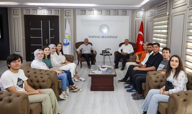 Kayseri'nin Yahyalı Belediye Başkanı Esat Öztürk, ilçede üniversiteyi kazanan bir grup öğrenciyi makamında kabul etti.