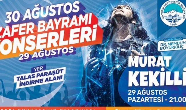 Dr. Memduh Büyükkılıç başkanlığında festivaller, konserler ve sanat sergileri ile çeşitli kültür sanat faaliyetlerine imza atan Kayseri Büyükşehir Belediyesi, yaklaşan 30 Ağustos Zafer Bayramı Kutlamaları kapsamında düzenleyeceği etkinliklerle Kayserililere 30 Ağustos'un coşkusunu yaşatmaya hazırlanıyor.Kentte birçok kültür sanat etkinliğiyle Kayserilileri buluşturan Büyükşehir Belediyesi tarafından 30 Ağustos Zafer Bayramı Konserleri düzenlenecek. 2 gün sürecek konserlerde sanatçılar Murat Kekilli, Ayşen Kaya ve Baha sahne alacak.29 Ağustos Pazartesi saat 21.00'de Talas Paraşüt İndirme Alanı'nda sanatçı Murat Kekilli'nin sahne alacağı konserle başlayacak etkinliğin ikinci günü, 30 Ağustos Salı saat 20.00'de Talas Paraşüt İndirme Alanı'nda sanatçı Ayşen Kaya ve yine aynı gün saat 21.00'de sanatçı Baha Kayserililerle buluşacak.Sanatçılar, 30 Ağustos Zafer Bayramı Konserleri'nde sevilen parçalarını seslendirecek.30 AĞUSTOS ZAFER KUPASI TENİS TURNUVASI BAŞLADIÖte yandan Büyükşehir Belediyesi'nin yaklaşan 30 Ağustos Zafer Bayramı dolayısıyla düzenlediği, sporseverlerin yoğun ilgisi ile 22 Ağustos 2022 Pazartesi günü başlayan Kayseri Büyükşehir Belediyesi 30 Ağustos Zafer Kupası Tenis Turnuvası, 30 Ağustos 2022 Salı günü sonra erecek. Kayseri Büyükşehir Belediyesi 30 Ağustos Zafer Kupası Tenis Turnuvası'na dereceye giren katılımcılara hediye çeki takdim edilecek.