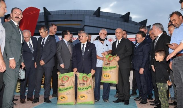 Tarım ve hayvancılık alanında önemli projelere imza atan Kayseri Büyükşehir Belediyesi, üreticilerin yanında yer alacak her projede boy göstermeye devam ediyor. Bu kapsamda bir dizi ziyaret ve temaslarda bulunmak üzere Kayseri'ye gelen Tarım ve Orman Bakanı Prof. Dr. Vahit Kirişci'nin katılımlarıyla, 'Tarım Arazilerinin Kullanımının Etkinleştirilmesi Projesi Sertifikalı Buğday Dağıtım Teslim Töreni' ve 'Küçükbaş Hayvan Üretiminin Verimliğinin Arttırılması Projesi Küçükbaş Hayvan Dağıtım Töreni' düzendendi. Törende kentte yaşayan 30 besiciye 38 koyun, 2 koç ve ilçelerde ekim alanlarında kullanılmak üzere bin ton tohumluk buğday teslim edildi.RHG Enerjitürk Enerji Stadyumu otopark alanında düzenlenen törene Büyükşehir Belediye Başkanı Dr. Memduh Büyükkılıç ile Tarım ve Orman Bakanı Prof. Dr. Vahit Kirişci'nin yanı sıra AK Parti Genel Başkan Yardımcısı, Yerel Yönetimler Başkanı Mehmet Özhaseki, Tarım ve Orman Bakan Yardımcısı Nihat Pakdil, Kayseri Valisi Gökmen Çiçek, AK Parti Kayseri İl Başkanı Şaban Çopuroğlu, İl Tarım ve Orman Müdürü Mustafa Şahin ve FAO Orta Asya Alt Bölge Ofisi (FAO-SEC) Koordinatörü, Türkiye Temsilcisi Viorel Gutu ile üreticiler ve vatandaşlar katıldı. Saygı duruşunda bulunulması ve İstiklal Marşı'nın okunmasıyla başlayan törende konuşan Büyükşehir Belediye Başkanı Dr. Memduh Büyükkılıç, yapılacak olan çalışmanın berekete vesile olması temennisinde bulunarak, "Kayserimizi onurlandıran değerli Bakanımız sabahtan beri koşturuyor. Gerçekten samimi, gayretli, işi bilen bir anlayış içerisinde ekibiyle birlikte Kayseri'mize, Anadolu'muza nasıl katkımız olur anlayışı içerisinde bizleri dinliyor, çalışmaları da takip ediyor. Şimdi de gerek hayvan dağıtımı gerekse tohum dağıtımı ile ilgili çalışmayı birlikte icra ediyoruz" dedi.100 MİLYON TL'YE ULAŞAN DESTEKTarım İl Müdürlüğü ile işbirliği halinde çiftçinin, hayvancılık yapanların istekleri, ihtiyaçları doğrultusunda ne gerekiyorsa onu yapma yönünde irade gösterdiklerini belirten Başkan Büyükkılıç, "Allah'a şükürler olsun bu sene itibariyle tam 100 milyon TL'ye ulaşan tohum desteği ya da diğer çalışmalarımız ile tarım ve hayvancılığa yaptığımız çalışmaları üreticilerimiz takip ediyorlar, bu fırsatı verdiğimiz için dua ediyorlar. Sayın Cumhurbaşkanımızın talimatları doğrultusunda üreticilerimizin adeta yüzünün gülmesi için üzerimize ne düşüyorsa yapıyoruz. Yeter ki üretsinler, yeter ki istihdama vesile olsunlar, yeter ki katma değer sağlasın, yeter ki ihracat yapsın. Cenab-ı Allah birliğimizi, beraberliğimizi, huzurumuzu bozmasın. Ay yıldızlı Türk bayrağımızın altında vatanına, milletine, devletine bağlı, inancına bağlı nesiller yetiştirmeyi ve bu yönde kimsesizin kimsesi olma anlayışı içerisinde çalışmalar yapmayı nasip eylesin diyorum" şeklinde konuştu."KÜÇÜKBAŞ HAYVANCILIK DAHA DA GELİŞECEK"Tarım ve Orman Bakanı Prof. Dr. Vahit Kirişci konuşmasında, üretimle ilgili önemli bir çalışma için bir arada olduklarını ve bundan dolayı büyük bir memnuniyet duyduğunu ifade ederek şunları kaydetti: