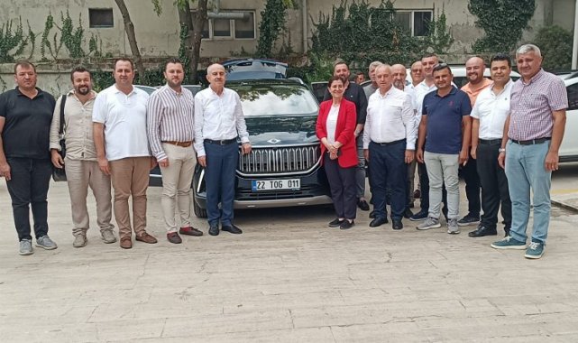 Keşan Ticaret Borsası'nın aldığı TOGG marka 34 TOG 011 plakalı rengi Gemlik Mavisi olan otomobil Keşan'a getirildi.Erdoğan DEMİR / EDİRNE (İGFA) - Keşan Ticaret Borsa Başkanı Necmi Kaymaz tarafından İstanbul'da teslim alınarak Keşan'a getirilen otomobil Kaymakamlık binası behçesinde AK Parti Edirne Milletvekili Fatma Aksal, Keşan Kaymakamı Cemalettin Yılmaz, Keşan Belediye Başkan Yardımcısı Tahir Özçınar, MHP Keşan İlçe Başkanı ve Keşan Ticaret Borsası Meclis Üyesi Adnan İnan, Keşan Ticaret ve Sanayi Odası Başkanı İsmail Şapçı ve borsa üyeleri tarafından karşılandı.Burada konuşan Necmi Kaymaz, TOGG'un yüzde 51'inin Gemlik'teki fabrikada imalatının yapıldığını belirterek "Arkadaşlar bu aracın yüzde 51'i TOGG'un Gemlik'teki fabrikasında imalatı yapılıyor. Biz de iki defa fabrikayı ziyaret ediyor. Buradan tüm vatandaşlarımdan ricam kimse negatif bir şey söylemesin. Bu araçlar Türkiye'deki fabrikada üretiliyor. Biz de Keşan Ticaret Borsası ve Keşan Ticaret Sanayi Odası olarak TOGG'un iştiraklerindeniz. Yarım saat içerisinde yüzde 80 şarj oluyor. Konfor diğer araçlarda ne varsa TOGG'da da var. Ben bir Türk vatandaşı olarak çok mutlu ve gururlu olduğumuzu buradan ifade etmek istiyorum. TOGG artık yollarda, sokaklarda, caddelerde" diye konuştu.Teslim töreninde konuşan AK Parti Edirne Milletvekili Fatma Aksal ise, "Hani diyorlardı TOGG nerde fabrikası yok diyorlardı. Fabrikası da var, gemilerle geliyor diyorlardı ama TOGG artık Keşan'da, inşallah Cuma günü İpsala'da da bir program yapacağız.Artık ülkenin dört bir yanında en ücra köşesine kadar, Edirne'den Hakkari'ye kadar TOGG yollarda hayırlı olsun inşallah. Grurumu, uzun yıllar bizim hayalimizdi yerli otomobil üretmek. Türkiye 100 yılında yerli otomobili biz ürettik, bugün de Keşan'ımızda hayırlı olmasını diliyorum" dedi.İPSALA'DA TOGG'UNU TESLİM ALDIÖte yandan İpsala Ticaret Borsası da TOGG aracın yine teslim aldı. Rengi Gemlik Mavisi olan otomobil de İpsala'ya getirilerek İpsala Ticaret Borsası Başkanı Necmi Sezer ve üyeler tarafından teslim alındı.