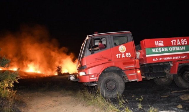 Keşan'da dün akşam saat 21.00 sıralarında Yenimahalle'deki bir tarlalık alanda çıkan yangın Keşan Belediyesi İtfaiye Müdürlüğü ve Orman İşletme Müdürlüğü itfaiye ekipleri tarafından söndürerek kontrol altına alındı.