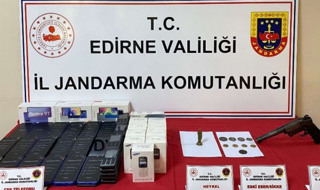 Edirne'de kaçakçılık olaylarına yönelik çalışmalarını hız kesmeden sürdüren İl Jandarma Komutanlığı gelen ihbarı değerlendirdiği Keşan'da 56 cep telefonu, 9 tarihi eser ile 20 adet kaçak cep telefonu bataryası ele geçirildi