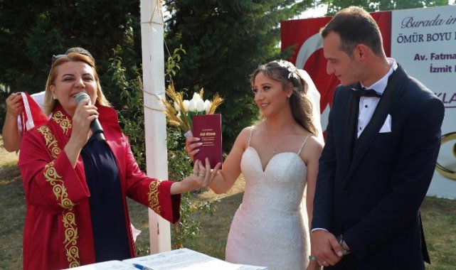 Kocaeli'de İzmit Belediyesi'nin halkın hizmetine sunduğu Gülümse Kafe'de yılın ilk nikah töreni gerçekleşti. İzmit Belediye Başkanı Fatma Kaplan Hürriyet'in kıydığı nikah töreni ile birlikte Tolga ve Çiğdem çifti dünya evine girmenin mutluluğunu yaşadıKOCAELİ (İGFA) - İzmit Belediye Başkanı Fatma Kaplan Hürriyet Yahya Kaptan Mahallesi'ndeki Gülümse Kafe'ye geçtiğimiz sene yeni bir misyon daha ekleyerek, kafe bahçesini açık hava konseptli nikah alanı olarak İzmitlilerin hizmetine sunmuştu.Genç çiftlerin birbirleri ile bir ömür geçirmek için 'evet' dediği 200 kişilik butik organizasyonlara ev sahipliği yapılabilen Gülümse Kafe'nin nezih bahçesinde bu yılın ilk nikah töreni gerçekleşti.Gülümse Kafe'de yapılan nikah töreninde Mustafa-Emel Çelebi çiftinin oğulları Tolga ile Necdet-Sibel Keskin çiftinin kızları Çiğdem hayatını birleştirdi.İzmit Belediye Başkanı Fatma Kaplan Hürriyet'in kıydığı nikahın şahitliklerini ise Serpil Fidan ve Serdar Akeroğlu gerçekleştirdi. Nikah akdi sonrasında genç çifte Türk Bayrağı, Gazi Mustafa Kemal Atatürk'ün fotoğrafı ve Kocaelispor armalı yastık hediyesi takdim edilirken Başkan Hürriyet genç çifte bir ömür boyu mutluluklar diledi.