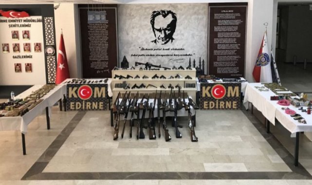 Edirne İl Emniyet Müdürlüğü’nün resmi sosyal medya hesabından, Türkiye genelinde 31 ilde gerçekleştirilen ‘kukla’ operasyonuna yönelik paylaşım yapıldı. Kaçakçılık ve Organize Suçlarla Mücadele ekipleri tarafından Edirne’de, adeta bir cephanelik dolusu silah ve mühimmat ele geçirilirken, kesici aletler, uyuşturucu madde ve tarihi eserler de ele geçirildi.