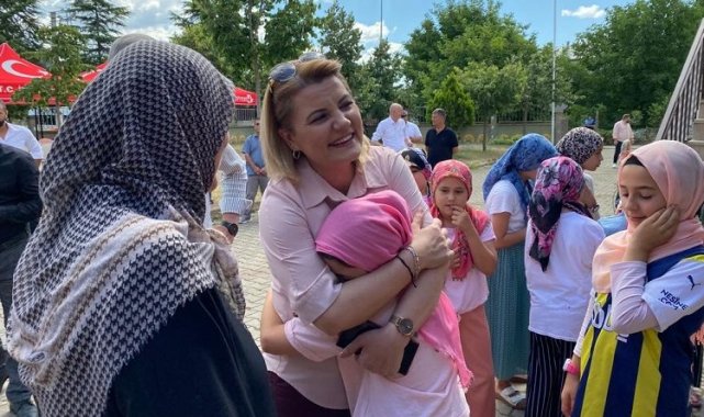 Kocaeli'nin İzmit Belediye Başkanı Fatma Kaplan Hürriyet, Yeşilova Karaağaç Camii’nde cami cemaati, mahalle sakinleri ve yaz Kur’an kursuna giden çocuklarla bir araya geldi