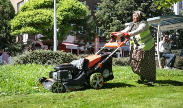 Kütahya Belediyesi Temizlik İşleri Müdürlüğü ekipleri, şehrin farklı noktalarında çim biçme çalışmalarını sürdürüyor.