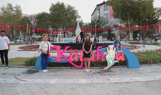 Kütahya’nın simgesi olan vazoyu da görecek şekilde meydana yerleştirilen Kütahya yazısı yoğun ilgi görüyor.
