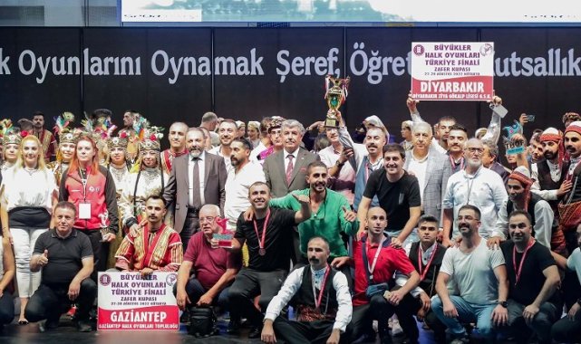 Türkiye Halk Oyunları ve Federasyonu ve Kütahya Belediyesi'nin işbirliğinde düzenlenen Büyük Zafer'in Yüzüncü Yılında Halk Oyunları Kulüpler Arası Büyükler Kategorisi Türkiye Finali Geleneksel Düzenlemesiz Dal'da ödüller sahiplerini buldu.KÜTAHYA (İGFA) - Yeni spor salonunda yapılan ilk gün yarışmalarında Kulüpler Arası Büyükler Kategorisi Türkiye Finali Geleneksel Düzenlemesiz Dal'da, kulüpler jüri karşısında oyunlarını sergiledi. Kıyasıya geçen yarışmalarda 3.'lüğü Ağrı Karaköse Sanat Kulübü, 2.'liği Gaziantep Halk Oyunları Topluluğu ve 1.'lik kupasını Diyarbakır Ziya Gökalp Lisesi G.S.K aldı.Birincilik kupasını Diyarbakır halk oyunları ekibine Belediye Başkan Vekili Abdullah Damcı ve Türkiye Halk Oyunları Federasyonu Başkanı Suat Aksu birlikte verdi.Yarışmalar yarın Geleneksel Düzenlemeli Dal'da devam edecek.