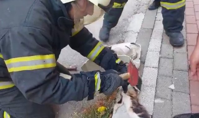 İzmit’te sokağa bırakılan seramik lavaboya sıkışan yavru kedi, Kocaeli Büyükşehir Belediyesi tarafından kurtarıldı