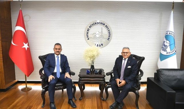 Bir dizi ziyaret ve açılışlar kapsamında Kayseri'ye gelen Milli Eğitim Bakanı Mahmut Özer, Büyükşehir Belediye Başkanı Dr. Memduh Büyükkılıç'a nezaket ziyaretinde bulundu.Başkanlık girişinde Bakan Özer'i çiçeklerle karşılayan Başkan Büyükkılıç, Bakan Özer ve beraberindeki heyetle birlikte başkanlık makamına geçti.Bakan Özer'in Başkan Büyükkılıç'a ziyaretine AK Parti Genel Başkan Yardımcısı, Yerel Yönetimler Başkanı Mehmet Özhaseki, Kayseri Valisi Gökmen Çiçek, önceki dönem Enerji ve Tabii Kaynaklar Bakanları'ndan AK Parti Kayseri Milletvekili Taner Yıldız, AK Parti Kayseri İl Başkanı Şaban Çopuroğlu ve İl Milli Eğitim Müdürü Ayhan Teltik eşlik etti. Makamda gerçekleşen ziyarette konuşan Başkan Büyükkılıç, ziyaretten duyduğu memnuniyeti dile getirerek, Bakan Özer'e başta eğitim alanı olmak üzere kentte yürütülen önemli çalışmalara ilişkin bilgiler verdi.Milli Eğitim Bakanı Mahmut Özer ise Başkan Büyükkılıç'a misafirperverliğinden dolayı teşekkür ederek, tüm Kayserililere selamlarını iletti.Başkan Büyükkılıç, günün anısına Bakan Özer'e el dokuması, kök boyadan yapılan Yahyalı kilimi takdim ederken, ziyaretin sonunda Bakan Özer, şeref defterini imzaladı.