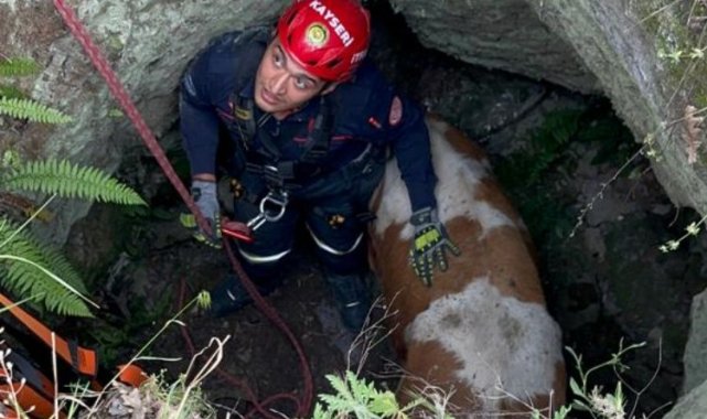 Kayseri'nin Talas ilçesi Kamber Mahallesi'nde besici Harun Aksoy, kendisine ait olan büyükbaş hayvanın 3 metrelik kuyuya düşmesi sonucu itfaiye ekiplerine ihbarda bulundu. Büyükşehir Belediyesi itfaiye ekipleri, gelen ihbar üzerine kısa sürede bölgeye gitti.Kuyuya düşen büyükbaş hayvan itfaiye ekipleri tarafından 2 saatlik çalışma ile kurtarılarak hayvan sahibi Harun Aksoy'a teslim edildi. Ekiplerin, zorlu şartlar altında büyükbaş hayvanı kurtarmak için canla, başla mücadelesi amatör kameralara da yansıdı. Ekiplerin operasyonu sonrası besici Aksoy, Büyükşehir itfaiye ekiplerine teşekkür ve dua etti.Kayseri Büyükşehir Belediye Başkanı Dr. Memduh Büyükkılıç'ın talimatıyla daha da güçlendirilen Büyükşehir İtfaiye Teşkilatı, 17 istasyon, 55 araç ve 347 personel ile yangın ve diğer olaylara daha etkili ve güvenli bir şekilde müdahale edebilirken, yangın ve doğal afetlerin yanı sıra, tehlikeye düşmüş tüm canlıların canlarını korumak ve kurtarmak için görevini başarıyla sürdürüyor.