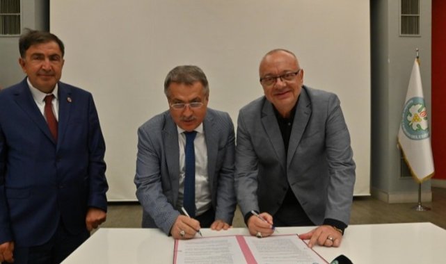 Manisa Büyükşehir Belediye Başkanı Cengiz Ergün ile Ahmetli Belediye Başkanı Ahmet Alhan, Ahmetli Çayı üzerinde yapılacak olan menfez tipi dere geçiş yapısı inşa edilmesi noktasında protokol imzaladı.