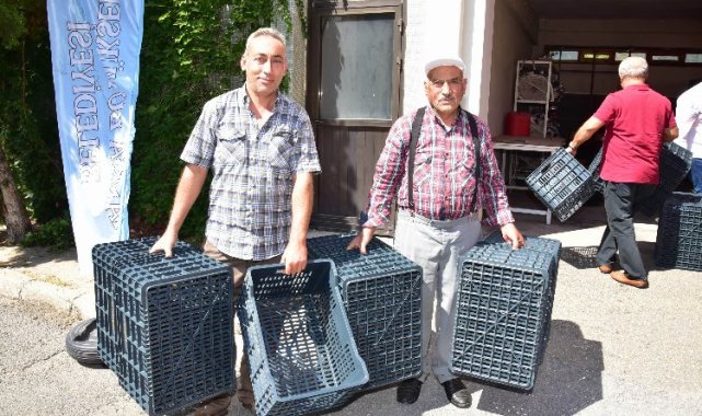 Manisa Büyükşehir Belediyesi Kırsal Hizmetler Dairesi Başkanlığı tarafından uygulamaya alınan zeytin kasasının kullanılmasının yaygınlaştırılması projesi kapsamında Salihli ilçesinde 460 üreticiye 4 bin 600 adet zeytin kasası dağıtıldı.