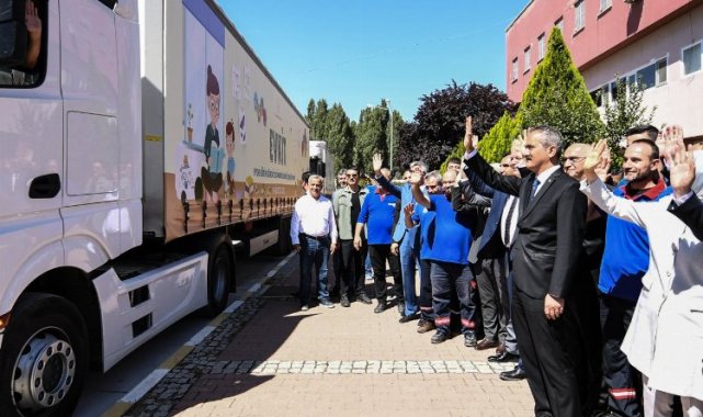 Millî Eğitim Bakanı Mahmut Özer, evde eğitim gören özel öğrenciler için hazırlanan eğitim kitlerini taşıyan tırları uğurladı.