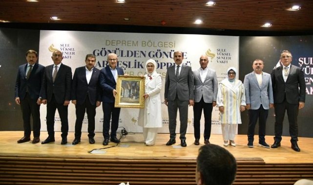 Programda konuşan Emine Erdoğan, "Kalplerimiz haftalarca; Kahramanmaraş, Adıyaman, Hatay, Gaziantep, Kilis, Şanlıurfa, Diyarbakır, Adana, Osmaniye, Elazığ, Malatya'da attı. Pek çok ülke toprağından daha geniş coğrafyaya yayılan, ender görülen şiddette, dahası üst üste gelen depremler ve seller ile sınandık. Buna rağmen devletimiz, afetlerin başladığı ilk andan itibaren, tüm kurumlarıyla varlığını hissettirdi. Sabahın ilk saatlerinden itibaren; gıda, kıyafet, elektronik cihaz, çadır, konteyner sevkiyatı ve arama kurtarma çalışmaları ivedilikle başlatıldı. Bakanlıklarımız ve bütün kurumlarımız; İş makineleri, gemiler, tırlar, helikopterler ve uçaklar, insansız hava araçlarıyla, seferber oldular. Bugün bizleri buluşturan, Şule Yüksel Şenler Vakfı'nın Hayır Çarşısı etkinliği vesilesiyle, bütün sivil toplum kuruluşlarımıza teşekkür etmek isterim. Gönüllülerimiz, bütün deneyimleriyle, devletimizin ve milletimizin yanında oldular. Sıcak yemek dağıtımından, çadır kentlere varıncaya dek, günlük ihtiyaçların karşılanması için, yoğun emek sarf ettiler. Özellikle kadınlarımız ve çocuklarımız için hazırlanan hijyen kitlerinden 'Harika İşler Çantası'na ve anaokullarına varıncaya dek, akla gelebilecek her ihtiyaç düşünüldü" dedi.