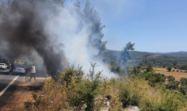 Milas’ın Ören Mahallesi’ne giderken Akbelen Ormanı’nın üst kısımlarında çıkan yangını fark eden belediye personelleri, alevlerin büyümesini engelledi.