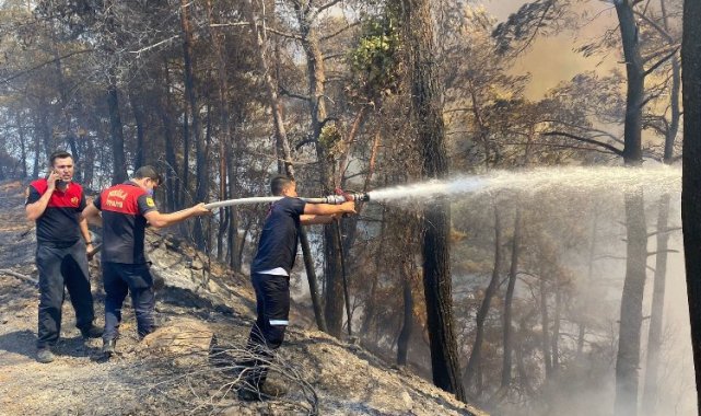 Muğla'nın Marmaris ilçesi Yalancıboğaz Mevkii Adaköy'de çıkan orman yangını yaklaşık 19 saatte kontrol altına alındı. Büyükşehir Belediyesi 620 hektar alanın zarar gördüğü yangında 132 personel 73 araçla yangında aktif görev aldı.MUĞLA (İGFA) - Muğla'nın Marmaris ilçesine bağlı Adaköy mevkiinde Çarşamba günü öğle saatlerinde çıkan orman yangını yaklaşık 19 saatlik müdahalenin ardından kontrol altına alınırken, 620 hektarlık ormanlık alan zarar gördü.Yangının başladığı ilk andan itibaren alevlerin kontrol altına alınması için mücadele eden Muğla Büyükşehir Belediyesi itfaiye ekipleri sahada aktif görev aldı.Büyükşehir Belediyesi çıkan orman yangınına 73 araç ve 132 personelle müdahalede bulunurken, bölgede olası yaşanacak olan elektrik kesintisine karşı jeneratör araçları ve görevli personellerin kumanya ihtiyacının giderilmesi için ikram aracı da gönderdi.Yangına müdahale eden personellere çorba, ekmek, su ve çay dağıtımı gerçekleştirilirken, Büyükşehir sağlık ekipleri de yangın alanında hazır bulunarak dumandan etkilenen ekiplere tıbbi destek sağladı.Muğla Büyükşehir Belediye Başkanı Dr. Osman Gürün, beraberinde Marmaris Belediye Başkanı Mehmet Oktay, CHP Muğla Milletvekili Süleyman Girgin, CHP Parti Meclis Üyesi Gizem Özcan ve CHP Muğla İl Başkanı Adem Zeybekoğlu ile yangın bölgesine gitti.Gece geç saatlere kadar yangın bölgesinde kalan Başkan Dr. Osman Gürün yangına müdahale eden ekiplerden sürekli bilgi aldı.
