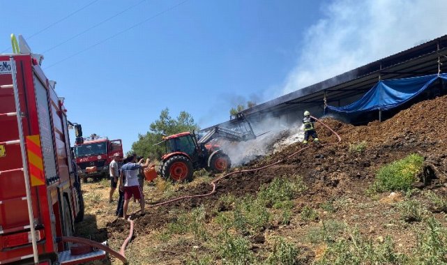 Muğla Büyükşehir Belediyesi Acil Müdahale Aracı ile Menteşe ilçesi Algı mahallesindeki çiftlik yangınında zarar gören hayvanlara olay yerinde müdahale etti.MUĞLA (İGFA) - Muğla'nın Menteşe ilçesi Algı Mahallesi'nde meydana gelen çiftlik yangınında yangının ekipler tarafından kontrol alınmasından sonra Büyükşehir Belediyesi Acil Müdahale Aracı 1 veteriner, 2 yardımcı personelle yaralı hayvanlara yerinde müdahale etti.20 büyükbaş hayvanın olduğu çiftlikte 2 büyükbaş hayvan telef olurken diğer büyükbaş hayvanlar ekipler tarafından kontrol altına alındı.Yangında ayrıca bir traktör tamamen yanarak kullanılamaz hale gelirken yaklaşık 1 bin adet balyada zarar gördü.Yangının ot balyalarına sıçraması ve alanda balya sayısının fazla olması nedeni ile soğutma çalışmaları yaklaşık 12 saat sürdü.