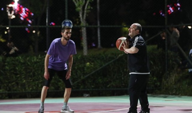 Sanayi ve Teknoloji Bakanı Mustafa Varank, Bursa'da gençlerle gece yarısı basketbol maçı yaptı.
