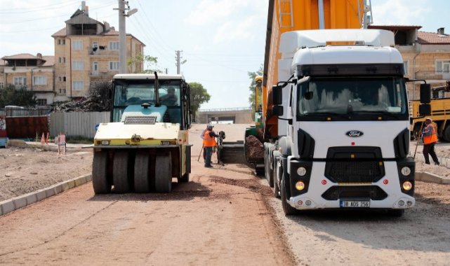 Daha önce parke taşla kaplı yolu sıcak asfalt konforu ile buluşturacak olan belediye ekipleri PMT serimi gerçekleştiriyor.