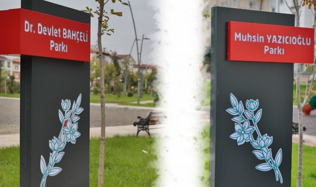 Devlet Bahçeli ve Muhsin Yazıcıoğlu'nun isimlerinin yer aldığı tabelalar Park ve Bahçeler Müdürlüğü ekiplerince parklara yerleştirilirken önümüzdeki günlerde bu parklar için açılış töreni düzenleneceği bildirildi.