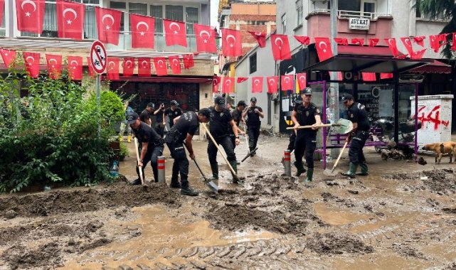Ordu'da dün akşam saatlerinde etkisini arttıran sağanak hayatı da olumsuz etkiledi. Afet niteliği taşıyan aşırı yağışların oluşturduğu olumsuzlukların etkilerini azaltmak için Ordu Valiliği koordinasyonunda tüm ekipler seferberlik başlattı.ORDU (İGFA) - Ordu'yu etkisi altına alan sağanak yağış sonrasında Ordu Valiliği koordinasyonunda tüm ekipler ve paydaş kurumlar harekete geçti.Ordu'nun her noktasında tahliye, tespit ve temizlik çalışmaları sürüyor.Afet niteliği taşıyan aşırı yağışların meydana getirdiği olumsuzlukların etkilerini azaltmak için var güçleriyle çalıştıklarını ifade eden Ordu Büyükşehir Belediye Başkanı Dr. Mehmet Hilmi Güler, Vali Tuncay Sonel ile birlikte çalışmaları yerinde inceledi.Ordu-Giresun sahil yolu ile Altınordu-Perşembe şehiriçi güzergahını çift taraflı açmak için büyük bir özveri ve titizlikle geceden bu yana çalışmaların sürdüğünü kaydeden Başkan Güler, tüm mesai arkadaşlarına kolaylıklar diledi.https://twitter.com/mhilmiguler/status/1677900867805085696Öte yandan Ordu genelinde başlatılan seferberliğe polis ve jandarma personeli de afetin izlerini silmek için gayret gösteriyor.Kahraman ekibin çalışma anına ilişkin fotoğrafları Büyükşehir Belediye Başkanı Dr. Mehmet Hilmi Güler, sosyal medya hesabından paylaştı.