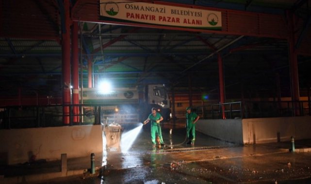 Bursa'nın Osmangazi Belediyesi, Kurban Bayramı dolayısıyla kesim alanı olarak düzenlediği noktalarda günün aralıksız temizlik çalışması yürütüyor.