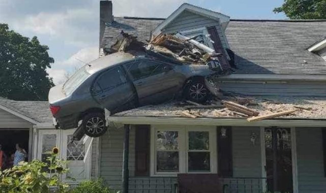 Amerika Birleşik Devletleri'nin Pensilvanya eyaletine bağlı Decatur kentinde bir araç kavşaktan hızını alamayarak evin ikinci katına uçtu.