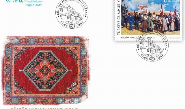 PTT AŞ tarafından "Kültür Varlıklarımız (Uşak)" konulu anma pulu ve ilkgün zarfı tedavüle sunuldu.İSTANBUL (İGFA) - PTT AŞ, 01 Eylül 2022 tarihinde "Kültür Varlıklarımız (Uşak)" konulu 7,50 TL (52x72 mm boyutunda) bedelli anma pulunu, söz konusu pula ait 15 TL bedelli ilkgün zarfını PTT iş yerlerinde, PTT'ye ait www.filateli.gov.tr web adresinde ve filateli cep uygulamasında satışa sundu.Söz konusu filatelik ürünlerin satışı ile aynı tarihte Uşak PTT Müdürlüğü/UŞAK adresinde "Kültür Varlıklarımız (Uşak) 01.09.2022 UŞAK" ibareli ilkgün damgası kullanılmaya başlandı.