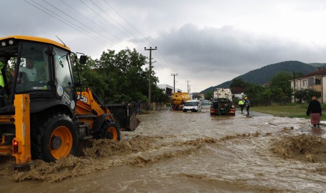Sakarya'da etkili sağanak yağış sonrası taşan dere sebebiyle zarar gören Hendek Çamlıca Mahallesi'ndeki içmesuyu hattında SASKİ ekipleri onarım çalışmalarını sürdürüyor.SAKARYA (İGFA) - Marmara Bölgesini etkisi altına alan sağanak yağış sonrası Sakarya'nın bazı ilçelerinde taşkın ve su basmaları meydana geldi.Taşkın ve su basmalarına karşı nöbet tutan Büyükşehir Belediyesi SASKİ ekipleri Hendek'te hızla müdahaleye başladı.Hendek Çamlıca Mahallesi bölgesinde yer alan derenin taşması sonucu hasar alan içmesuyu hattında SASKİ ekipleri hızla onarım çalışmalarına başladı. Vatandaşların mağdur olmaması adına tüm ekipleriyle teyakkuz altında olan SASKİ, özverili şekilde çalışan ekipleri sayesinde bölgedeki su sıkıntısını en kısa sürede çözüme kavuşturmayı planlıyor.Sosyal medya hesabından çalışmalara dair bilgiler paylaşan Sakarya Büyükşehir Belediye Başkanı Ekrem Yüce, "Şehrimizde yaşanan şiddetli yağışlar sebebiyle oluşan sel ve su baskınlarına karşı SASKİ Ekiplerimiz sahada mesaisini sürdürüyor.Meteorolojinin uyarıları çerçevesinde teyakkuz halinde tuttuğumuz ekiplerimiz oluşan su baskınlarını temizliyor. Olumsuzlukların tekrarlanmaması için önlemlerimizi alıyor çalışmalarımızı sürdürüyoruz" ifadelerini kullandı.