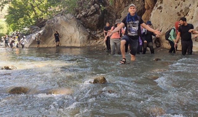 Uzun süredir güvenlik sıkıntısı dolayısıyla yürüyüş yapılamayan Sason Handere Kanyonu'nda bölgenin huzura ermesi ve güvenlik sıkıntılarının ortadan kalkmasıyla ilk yürüyüş gerçekleştirildi.Yenibahar Haber / BATMAN (İGFA) - Türkiye Dağcılık Federasyonu Diyarbakır İl Temsilciliği ve Diyarbakır Doğa Sporları Kulübü (DİDOSK) un ortaklaşa düzenlediği ve 105 doğaseverin katıldığı ve 6 saat süren kanyon yürüyüşünde doğaseverler kanyonda eğlenceli dakikalar geçirdi.Yürüyüş yaptıkları parkurun bölgenin en güzel kanyonlarından biri olduğunu belirten DİDOSK Yönetim Kurulu Üyesi Eray Karahan, buranın bir en evvel turizme kazandırılması gerektiğini belirtti.Karahan, yaptığı açıklamada "Bölgemizin en güzel parkurlarından bir tanesi. Bugüne kadar turizme kazandırılmamış gizli cevherlerinden biri. Sayın Kaymakamımız Murat Mete'ye misafirperverliği için teşekkürlerimizi iletiyoruz. Buranın acilen turizme kazandırılması gerekiyor. Ancak alt yapı eksikliği var, rotaların ve patikaların belirlenmesi lazım. Bunun dışında her şey çok güzeldi. Çok beğendik. Keyifli bir geziydi" dedi.Yürüyüşe katılan Beyin Cerrahı Uzmanı Prof. Dr. Adnan Ceviz, güzellikleri görüp güzel düşünen ve spor yapmak isteyenlere kanyon önderdi. Türkiye'deki ve hatta dünyadaki doğaseverleri bu kanyona davet eden Ceviz, "Dağcılık Federasyonun bu tür kanyonları inceleyip kendi sitesinde tavsiye etmesini öneriyorum. Yada özellikle Sağlık Bakanlığı bünyesinde sağlıklı yürüyüşler için Doğa Sporları Federasyonu kurulup buranın değerlendirilmesini beklemekteyim" dedi.Yürüyüşe katılan Berna Topal ise, güzel bir gezi olduğu kadar zorlu ama eğlenceli olduğunu belirtti.Öğretmen Mehmet Şükrü Akkaya, "Özellikle Sason Kaymakamı Murat Mete'ye teşekkür ederek, "Sason çok güzel devamlı gelmek istiyoruz. Bu kanyonda ilk defa yürüyüş düzenlendi. Tabi yürüyüşlerin daha sağlıklı olması için bundan sonra buraların daha uygun hale getirilmesi lazım. Sason'a bu son gelişimiz olmayacak. Devamını bekliyoruz" dedi.Geziye Diyarbakır'dan katılan Berivan Öztürk, yürüyüşün çok keyifli geçtiğini belirterek memnuniyetini dile getirirken, Merve Çetinkaya, ilk defa toplulukla birlikte böyle bir doğa yürüyüşüne katıldığını söyledi. Türkiye Dağcılık Federasyonun organizesiyle ilk kez burayı keşfettiklerini belirten Ayşe Çetinkaya da, yakın çevresini de buraya getirip gezdirmeyi düşündüğünü ifade etti."YENİ BİR YER KEŞFETMEK GÜZEL"