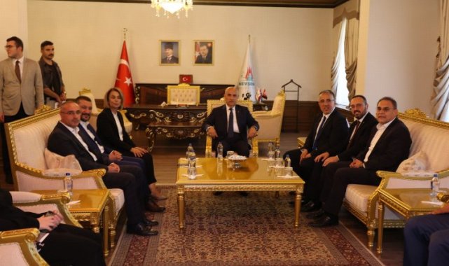 Tarım ve Orman Bakanı Vahit Kirişci'yi Nevşehir Belediyesi'nde Başkan Dr. Mehmet Savran ve başkan yardımcıları karşıladı. Ziyarette Bakan Kirişçi'ye Nevşehir Belediyesi'nin devam eden ve önümüzdeki süreçte hayata geçireceği projeler hakkında bilgiler veren Belediye Başkanı Savran, bakanlık olarak verdikleri desteklerden dolayı Kirişçi'ye teşekkür etti.