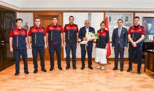 Trabzon Büyükşehir Belediye Başkanı Murat Zorluoğlu, İtfaiye Teşkilatı'nın 308'inci kuruluş yıl dönümü ve İtfaiye Haftası dolayısıyla itfaiye personelini makamında ağırladı.TRABZON (İGFA) - Trabzon Büyükşehir Belediye Başkanı Murat Zorluoğlu, İtfaiye Haftası dolayısıyla İtfaiye Dairesi Başkanı Mehmet Olcay Bal ve personelini kabul etti. İtfaiye Dairesi Başkanı Bal, Başkan Zorluoğlu'na yürütülen çalışmalarla ilgili detaylı bilgi verdi. Ziyaretin sonunda Başkan Zorluoğlu'na İtfaiye Dairesi Başkanlığı personeli tarafından çiçek ve itfaiye rozeti takdim edildi.