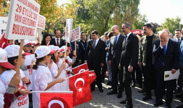 Millî Eğitim Bakanı Mahmut Özer, İçişleri Bakanı Süleyman Soylu ve TRT Genel Müdürü Mehmet Zahid Sobacı, Ankara'da Afşin Bey İlkokulunda "Öğrencilerde Trafik Bilincinin Geliştirilmesi İş Birliği Protokolü" imza töreni ve bu kapsamda gerçekleştirilen "Yayalara Öncelik Duruşu, Hayata Saygı Duruşu" etkinliğine katıldı.ANKARA (İGFA) - Millî Eğitim Bakanlığı, İçişleri Bakanlığı ve TRT Genel Müdürlüğü arasında "Öğrencilerde Trafik Bilincinin Geliştirilmesi İş Birliği Protokolü" imzalandı.Törendeki konuşmasında imzalanan protokolle okulların çok daha güvenli bir şekilde fonksiyonlarını yerine getirmesi için önemli bir iş birliğinin hayata geçirildiğini belirten Millî Eğitim Bakanı Mahmut Özer "İçişleri Bakanlığımızla, okullarımızın hem içinin hem çevresinin güvenli olmasıyla ilgili çok kapsamlı iş birliğini yıllardan beri başarılı bir şekilde sürdürüyoruz." dedi.Bakan Özer, müfredatta yer alan zorunlu trafik güvenliği dersine ilave bu eğitimlerle çocukların çok daha bilinçli olacaklarını ve olumlu davranışları pekiştireceklerini söyledi.Özer, trafik bilincinin geliştirilmesi için İçişleri Bakanlığı ile uygulamaya konulan mobil trafik eğitim tırları projesinin kısa sürede sahada büyük karşılık bulduğunu, yaklaşık 39 ilde 25 bine yakın öğrenciye trafik eğitimleri verildiğini söyledi.TRT Genel Müdürlüğünün de içerik üretimi anlamında Bakanlığa destek sağladığına işaret eden Özer, projenin 81 il ve 922 ilçeye hızla yayılacağını kaydetti.