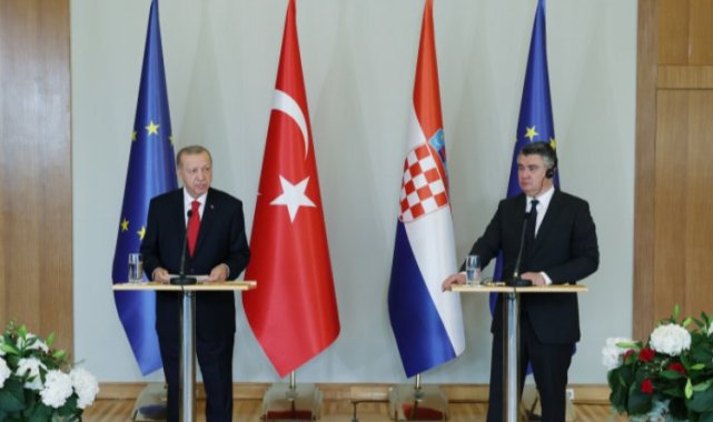 Cumhurbaşkanı Erdoğan ve Hırvatistan Cumhurbaşkanı Milanovic, baş başa ve heyetler arası görüşmelerin ardından iki ülke arasındaki anlaşmaların imzalandığı törene katıldı.