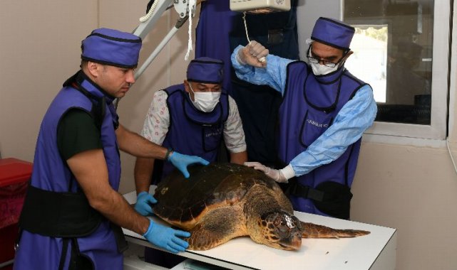 İzmir Körfezi'nde kafasına aldığı darbenin ardından en yakın hayvan sağlığı birimi olarak Karabağlar Belediyesi Hayvan Sağlığı Merkezi'ne getirilen Caretta Caretta türü deniz kaplumbağasının tedavisine başlandı.