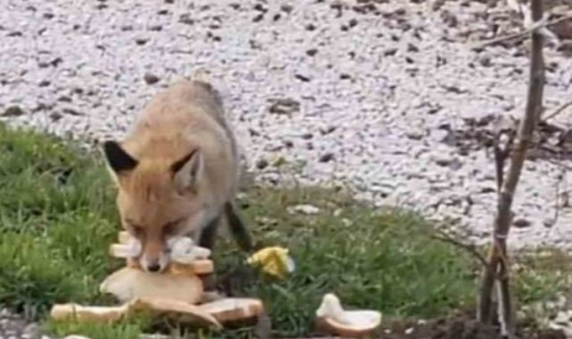 Yolda gördüğü tilkiyi ekmekle besledi